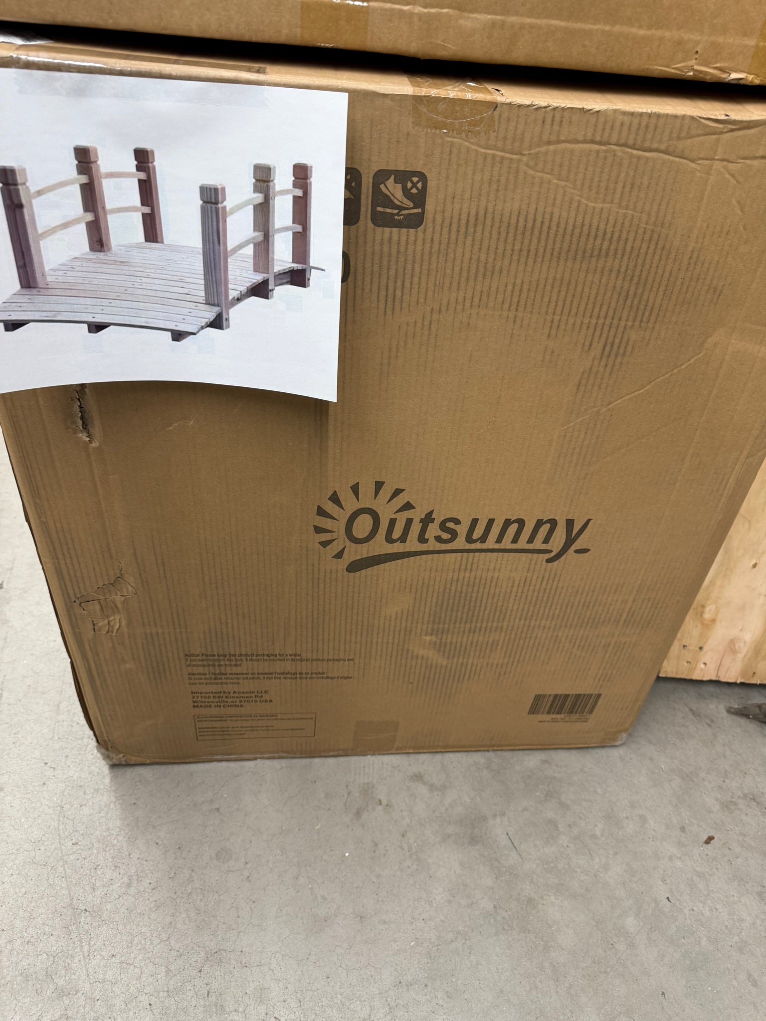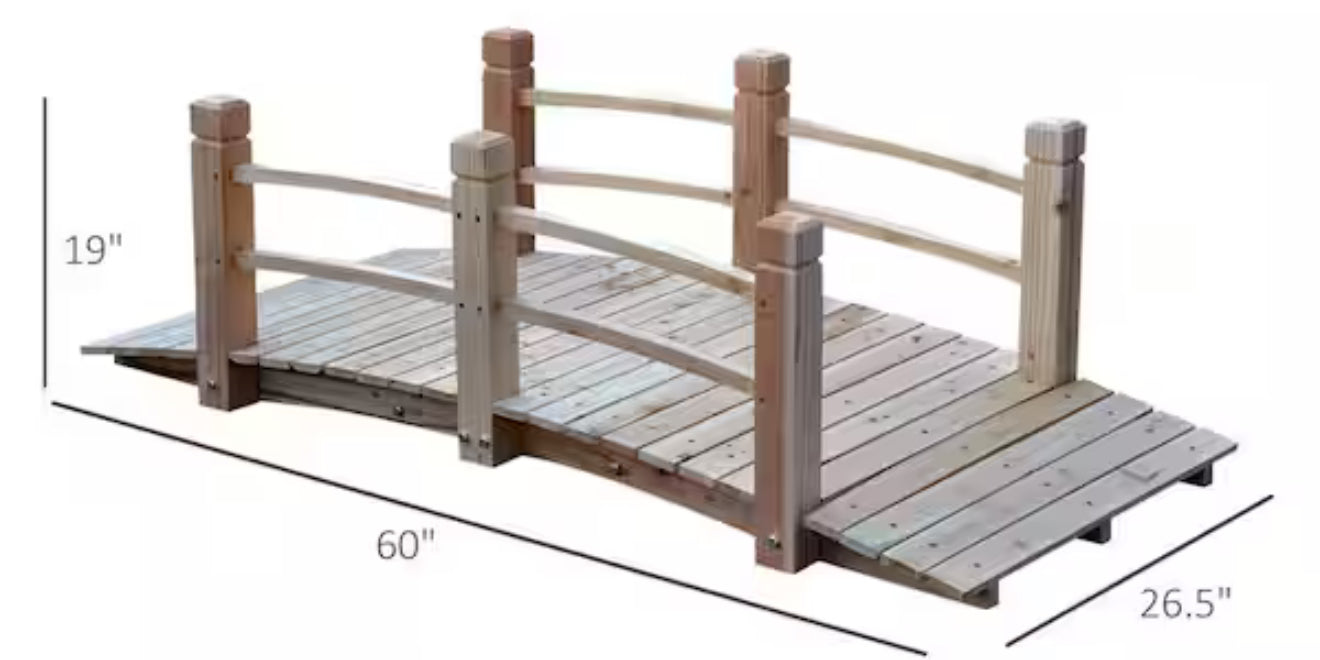 Outsunny 60 in. x 26.5 in. x 19 in. Wooden Stained Finish Garden Footbridge with Safety Railings! (NEW IN BOX)