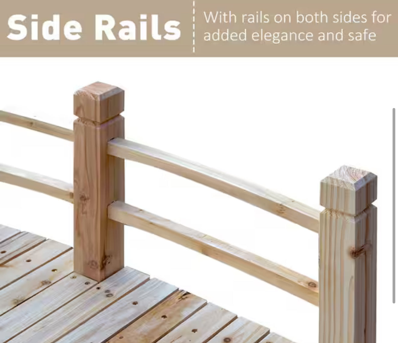 -SECURITY DESIGN: There are curved side rails with three posts on each side of the bridge kit for added security and convenience. This means the footbridge is as secured as it is beautiful.