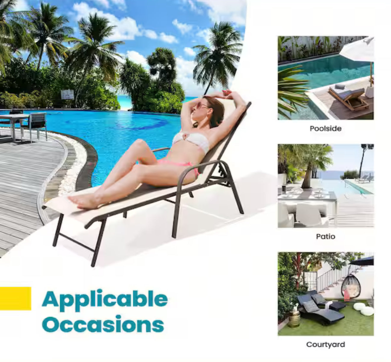 -Made for Various Occasions: Comfortable sunbathing lounge chair is a good choice for patio, courtyard, poolside, garden, etc.