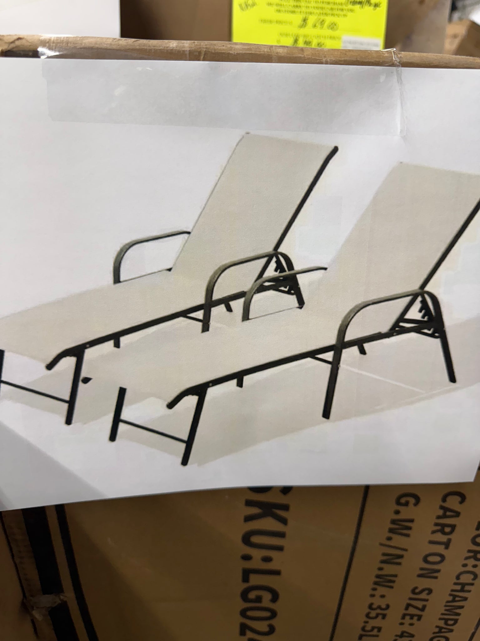 Pellebant Champagne 2-Piece Aluminum Adjustable Outdoor Patio Chaise Lounge in New Beige with Armrest! (NEW IN BOX)