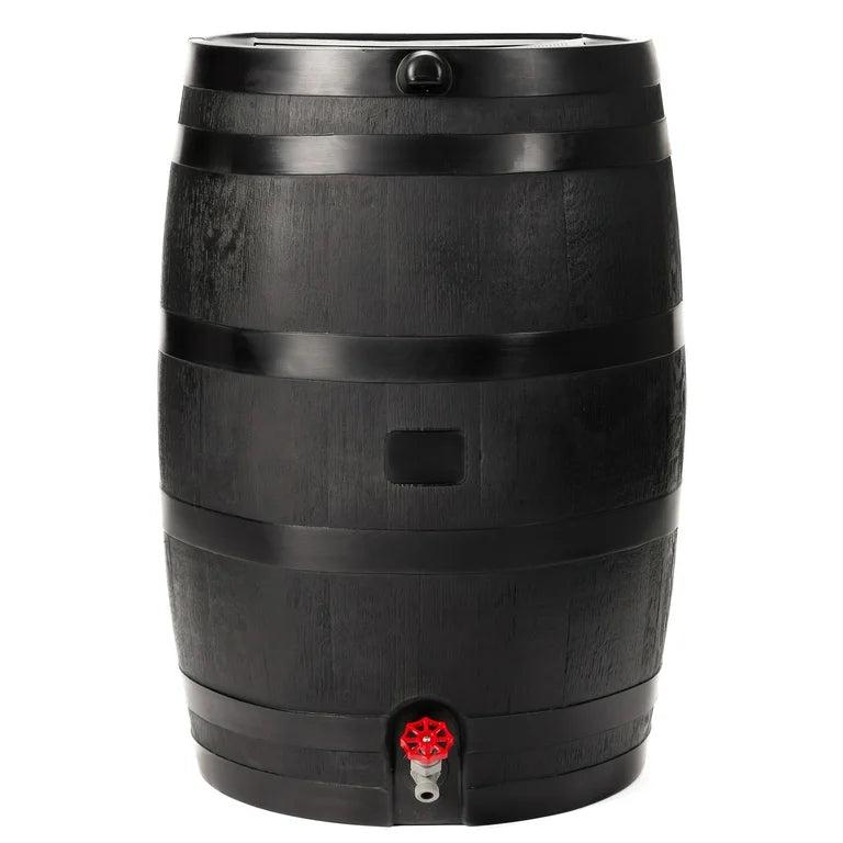 RTS Home Accents Polyethylene 50 Gallon Flat Back Eco Rain Barrel, Black Color! (NEW)