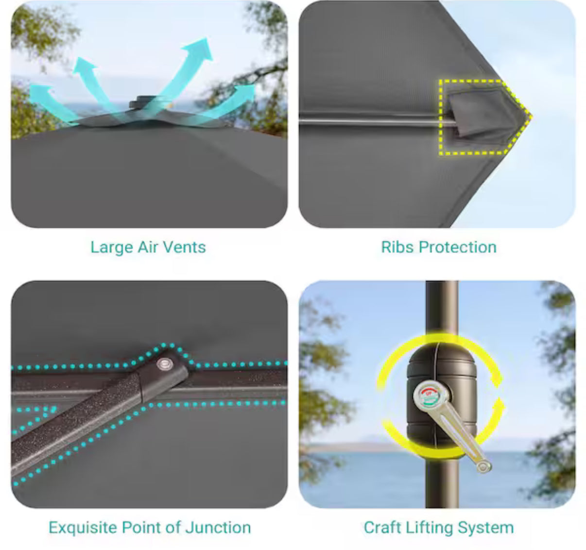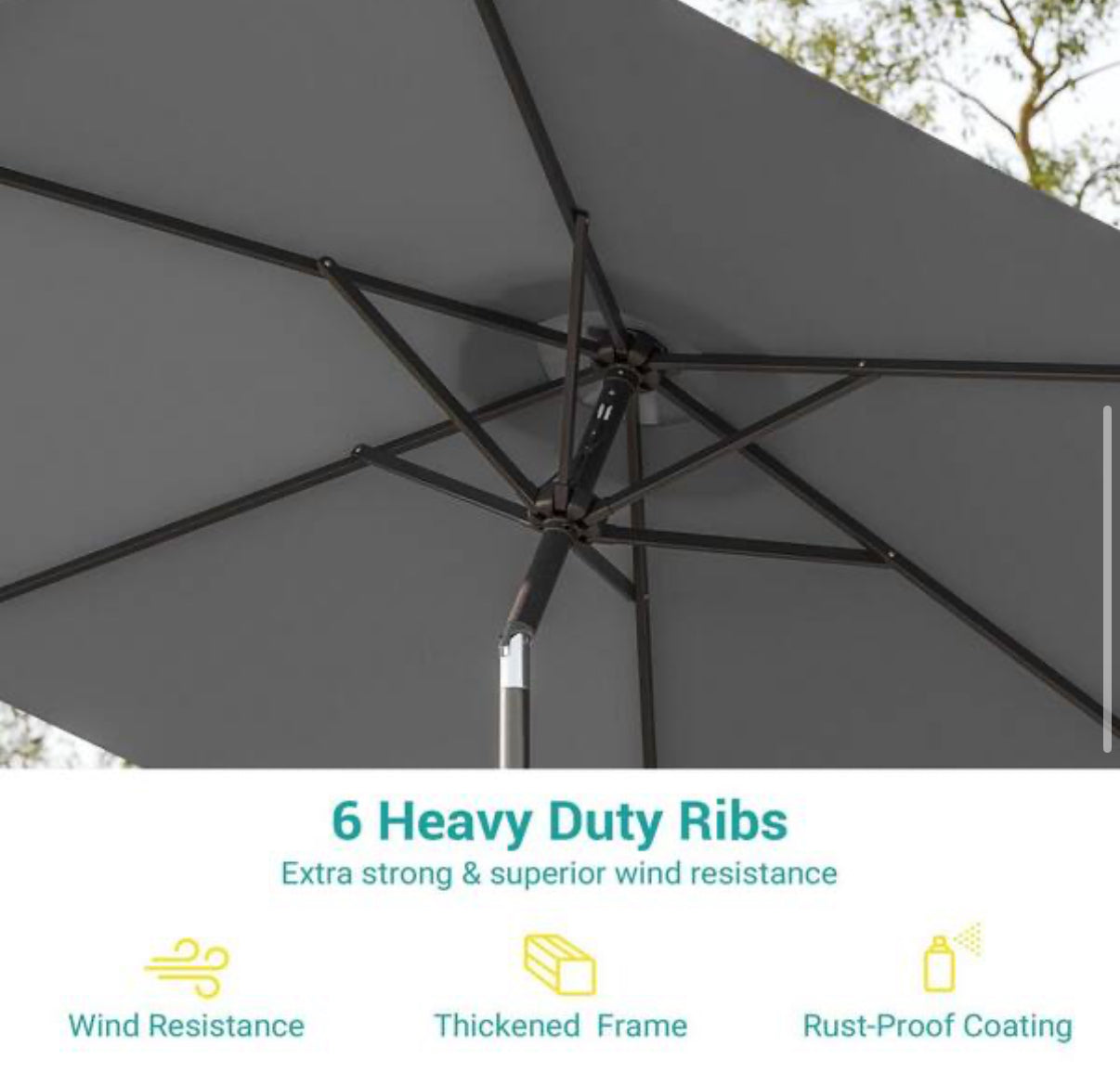 Sonkuki 7.5 ft. Patio Market Crank and Tilt Umbrellas, Table Umbrellas, UV-Resistant Canopy in Anthracite Gray!! NEW IN BOX!!