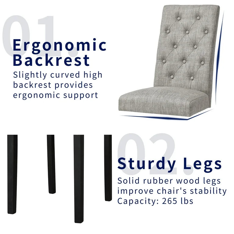 -Ergonomic Curved Backrest – Contours to your spine for enhanced comfort and back support during meals or gatheringsElegant Button Tufting – Adds timeless style and detail to your dining room, kitchen, or accent seating area